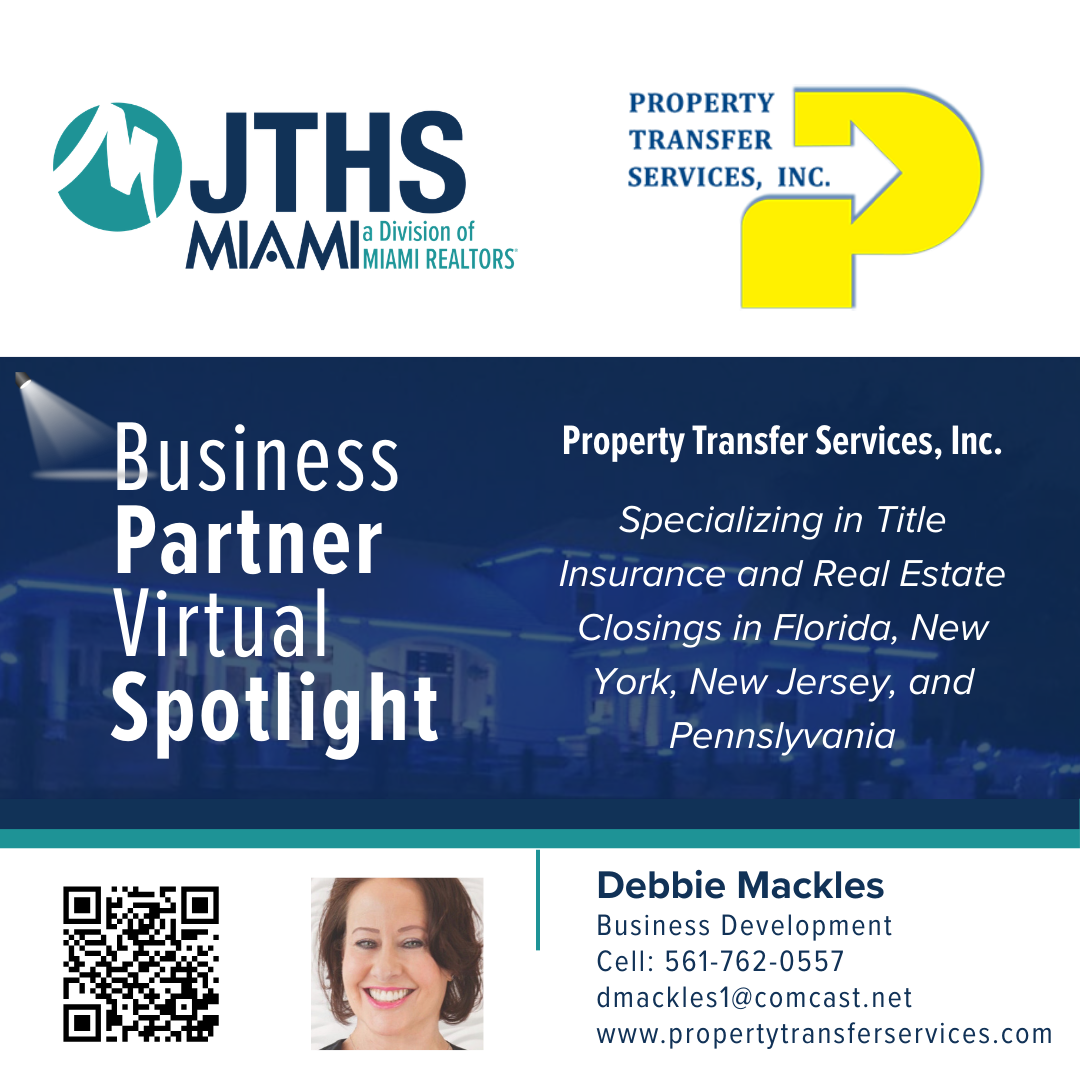 “Words cannot adequately EXPRESS what JTHS-MIAMI means to me. Out of 140 Realtors in my Palm Beach Office, I am probably the only one that is a member. Whenever I call the office with a question, which could be quite often, there is always Joanne or Sarah answering the phone. No voice mails, with all sorts of prompts until you get to the right person, who is never available. Leave them a message, and get no response.My questions run from simple to major problems, the two of you always have the answer. JTHS-MIAMI IS THE ONLY ONE!!!” Bernie Rubinstein, Coldwell Banker Realty
